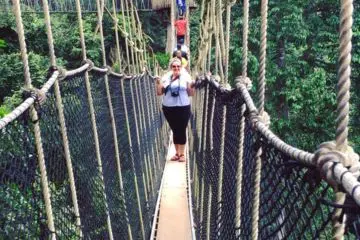 Sitting on the front porch of the Woma family home in the middle of the dance center, you hear the sounds of children laughing and playing. A warm breeze brings the smells of fires cooking the evening meal, and whips some dust into the air. Crossing the Kakum Canopy Walk, you clutch the rope bridge tightly as you try not to look down at the rainforest floor 130 feet below, while monkeys and birds hop around curiously observing you. Merchants in the Accra Art Center loudly call you into their stalls as the vibrant colors beckon you to come closer…